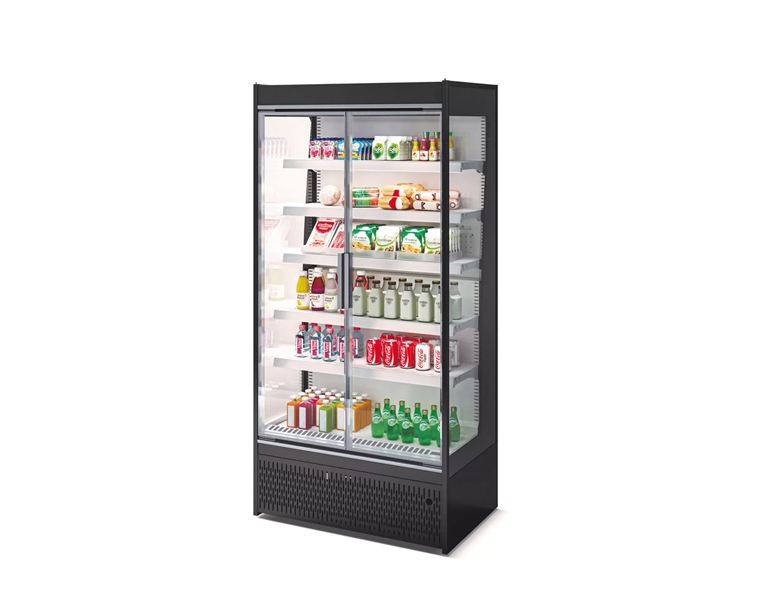 Les portes vitrées double vitrage (dans certains modèles) non seulement améliorent la visibilité, mais limitent également les pertes thermiques, ce qui réduit la consommation d’énergie. Le système de fermeture automatique des portes renforce cet avantage. De plus, l’éclairage LED contribue à créer une mise en valeur homogène des produits, sans générer de chaleur excessive, ce qui pourrait nuire à la performance de réfrigération.
